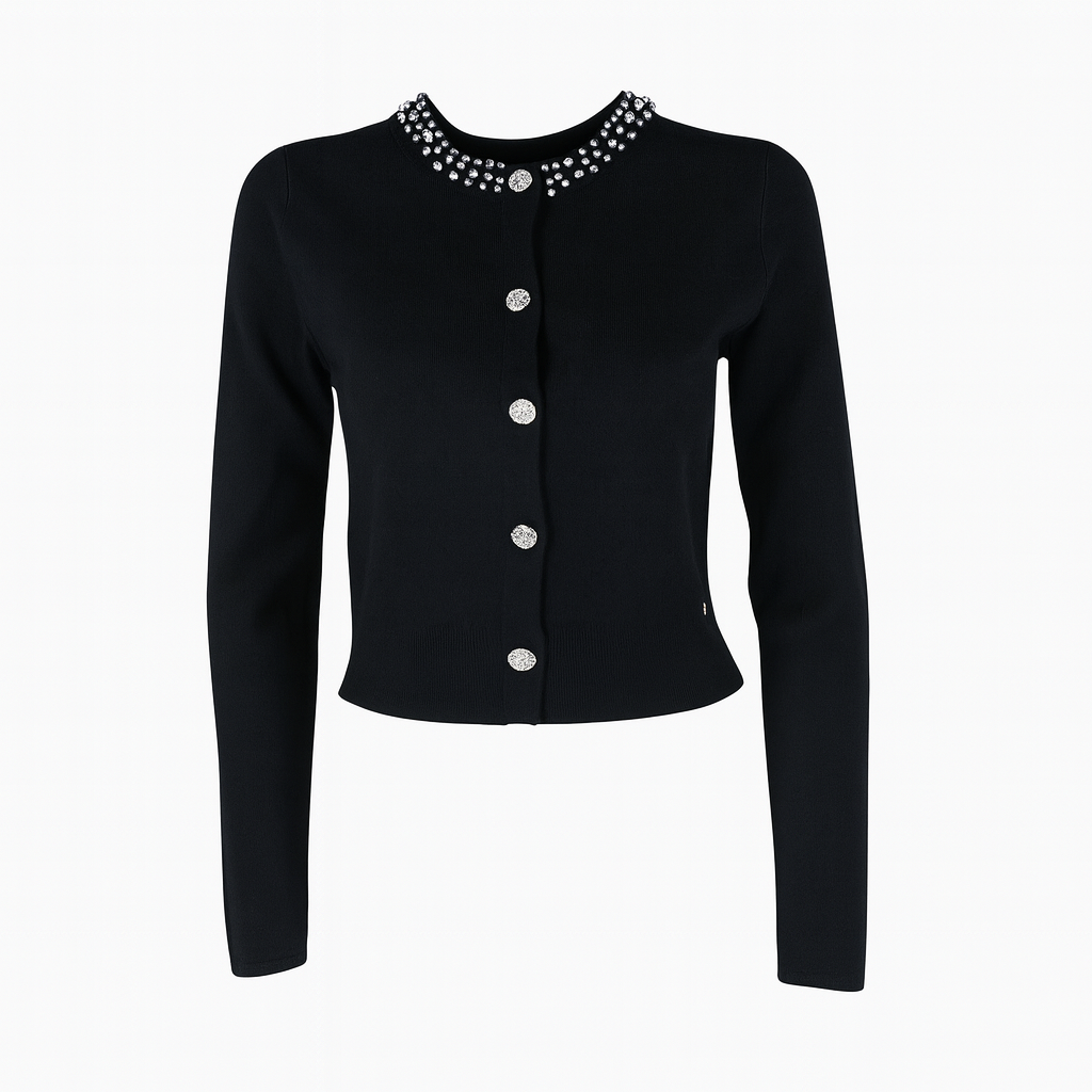 Knit with collar rhinestones and buttons