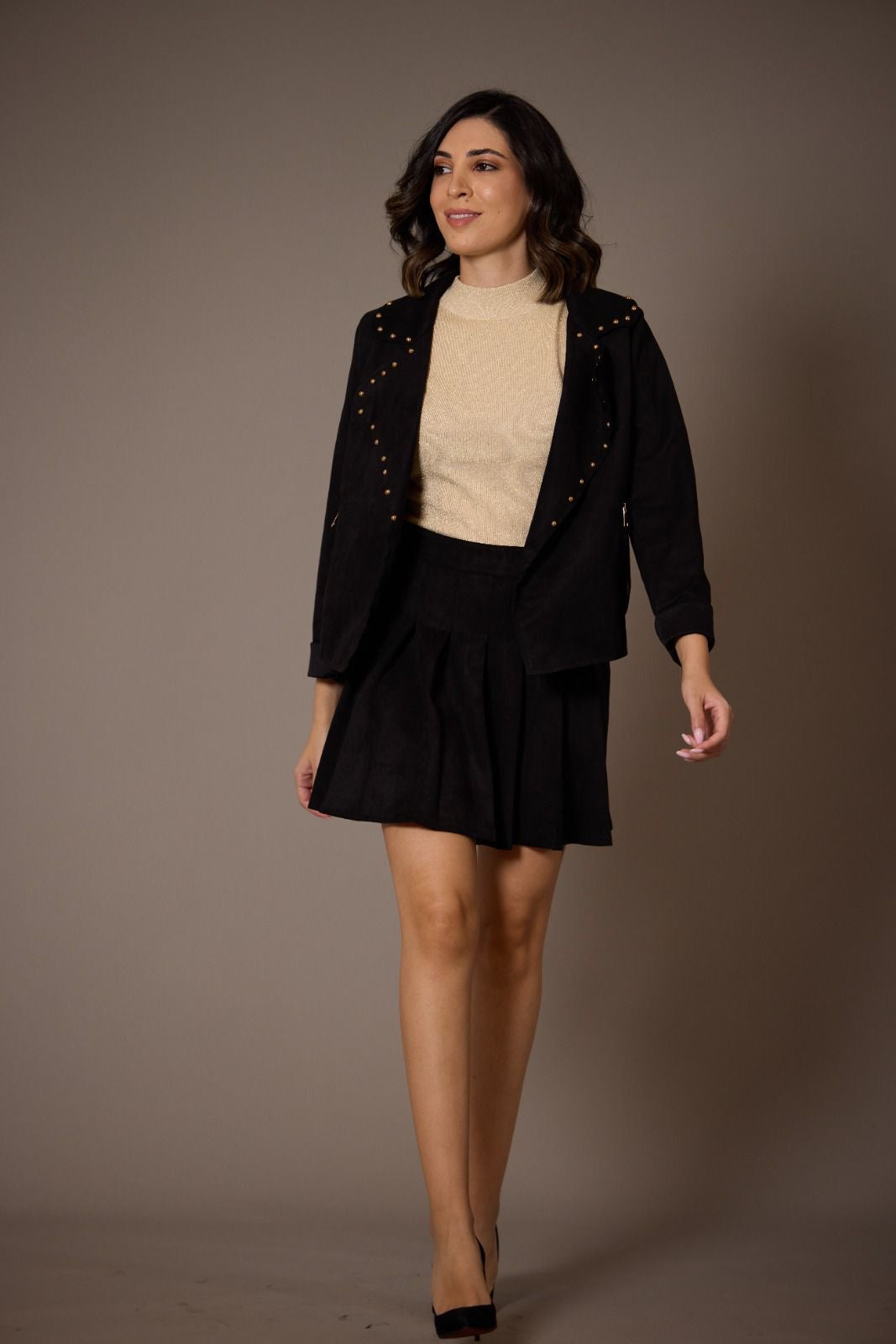 Make a refined statement with this elegant jacket adorned with luxurious gold details. The carefully placed gold accents elevate the design, adding a touch of sophistication and glamour to your wardrobe. Whether you're layering over a dress for an evening event or pairing it with casual pieces for everyday wear, this jacket brings instant polish to any ensemble. The gold embellishments catch the light beautifully, creating visual interest while maintaining a timeless aesthetic. Perfect for building confidence in your style, this piece transitions seamlessly from professional settings to special occasions. Layer it over your favorite outfits to instantly transform your look and express your refined taste. Invest in a jacket that celebrates your appreciation for quality craftsmanship and understated luxury.